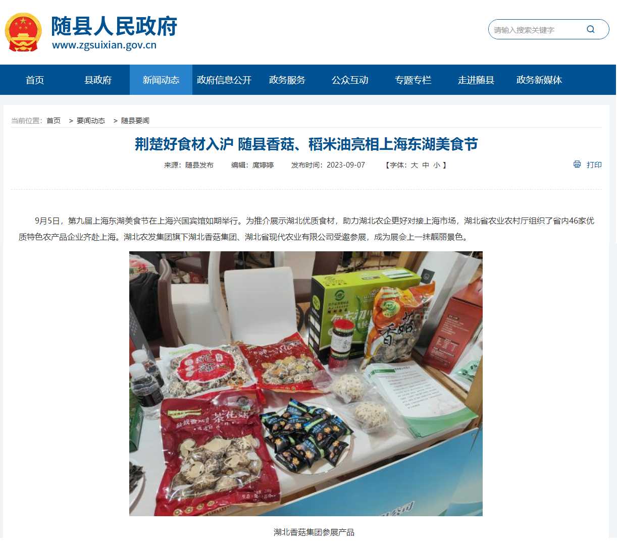 隨縣人民政府:荊楚好食材入滬 隨縣香菇、稻米油亮相上海東湖美食節
