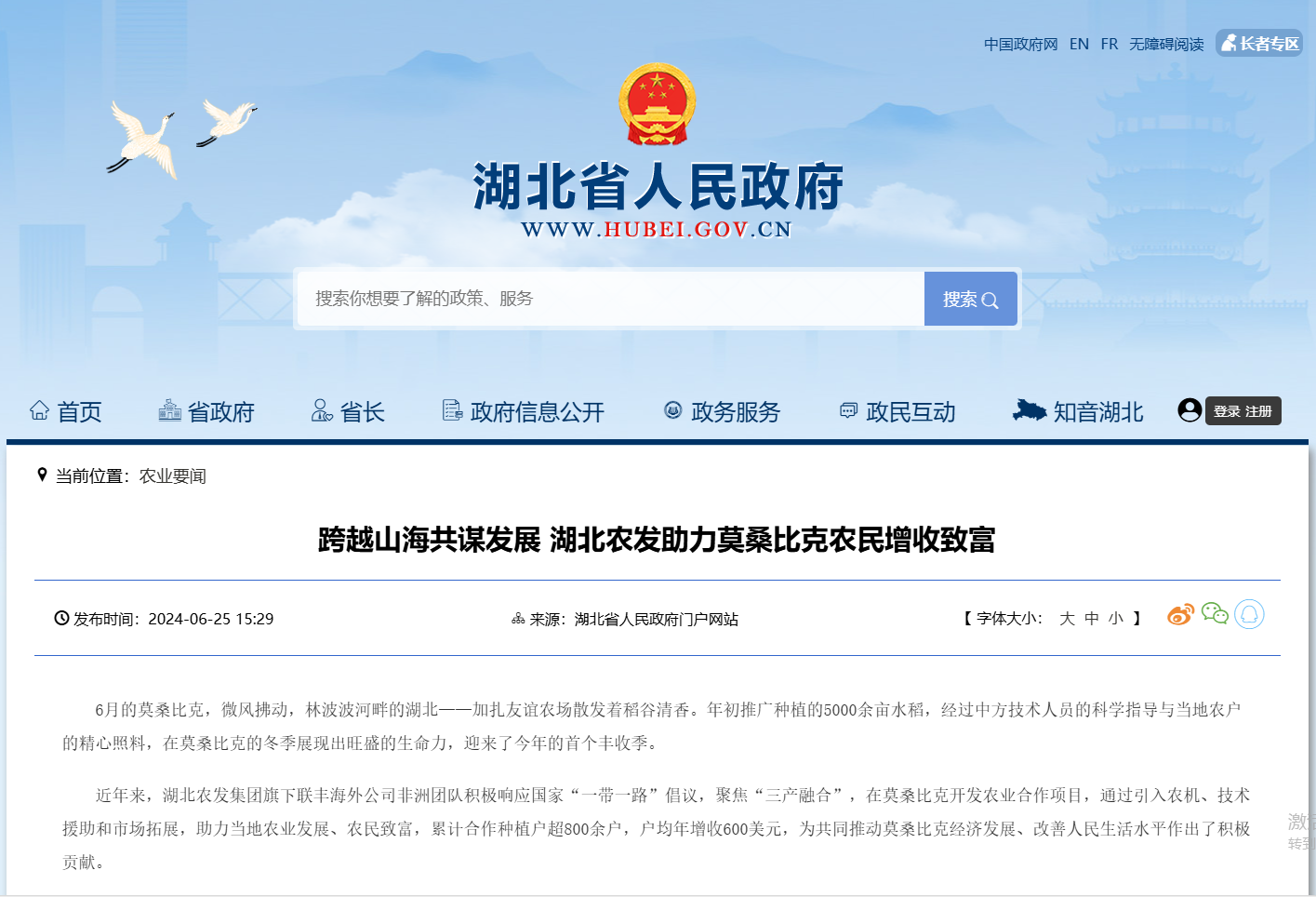 湖北省人民政府:跨越山海共謀發(fā)展 湖北農(nóng)發(fā)助力莫桑比克農(nóng)民增收致富